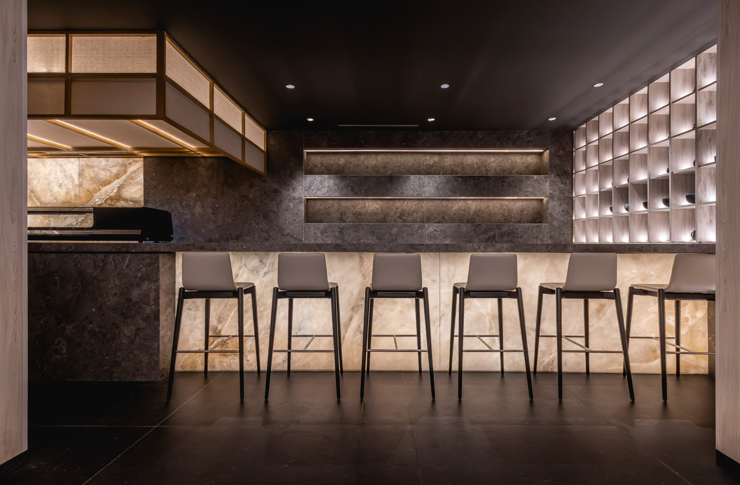 A combination of stone, wood, and black metal creates depth and restrained elegance. Tanoshii proves that luxury doesn’t shout — it whispers through precision and immersive experience.