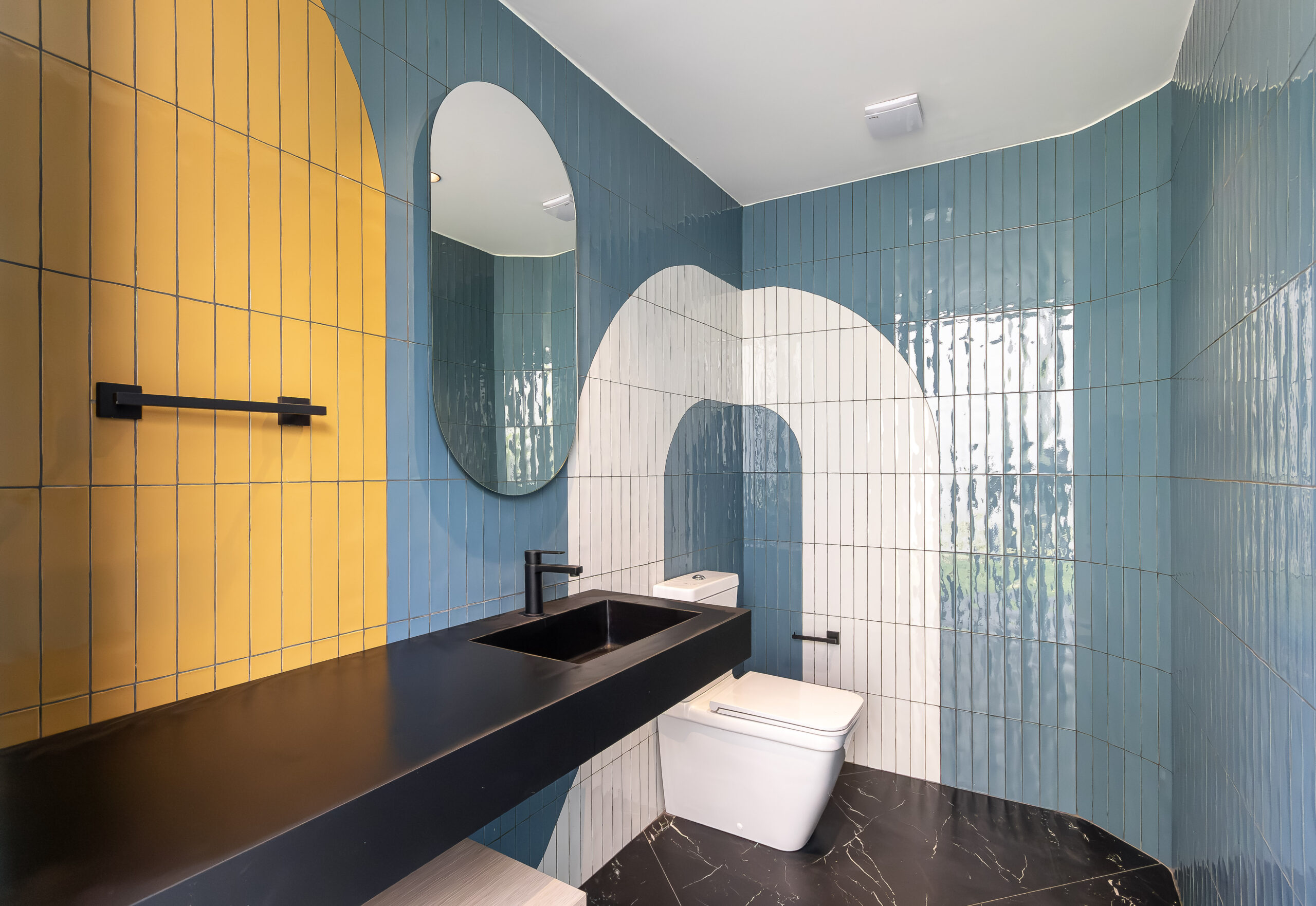The furniture, inspired by organic geometric forms, reinforces the visual coherence of the space. Every line, volume, and texture is intentional, contributing to a layout that flows with balance and ease.