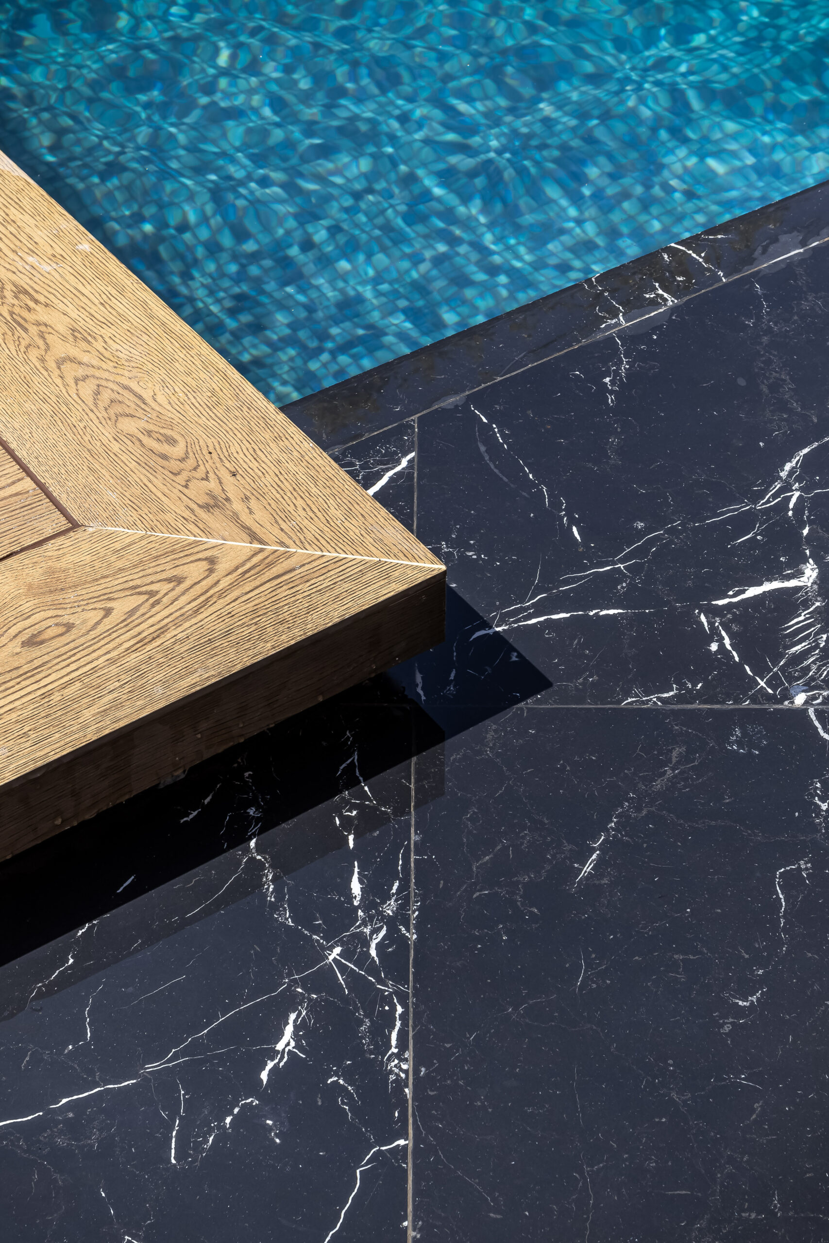 The Venus Bar Stools by Parla Design, crafted in warm woods and textiles, complete the composition by adding texture and a welcoming contrast to the main furniture’s solidity.