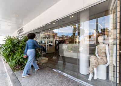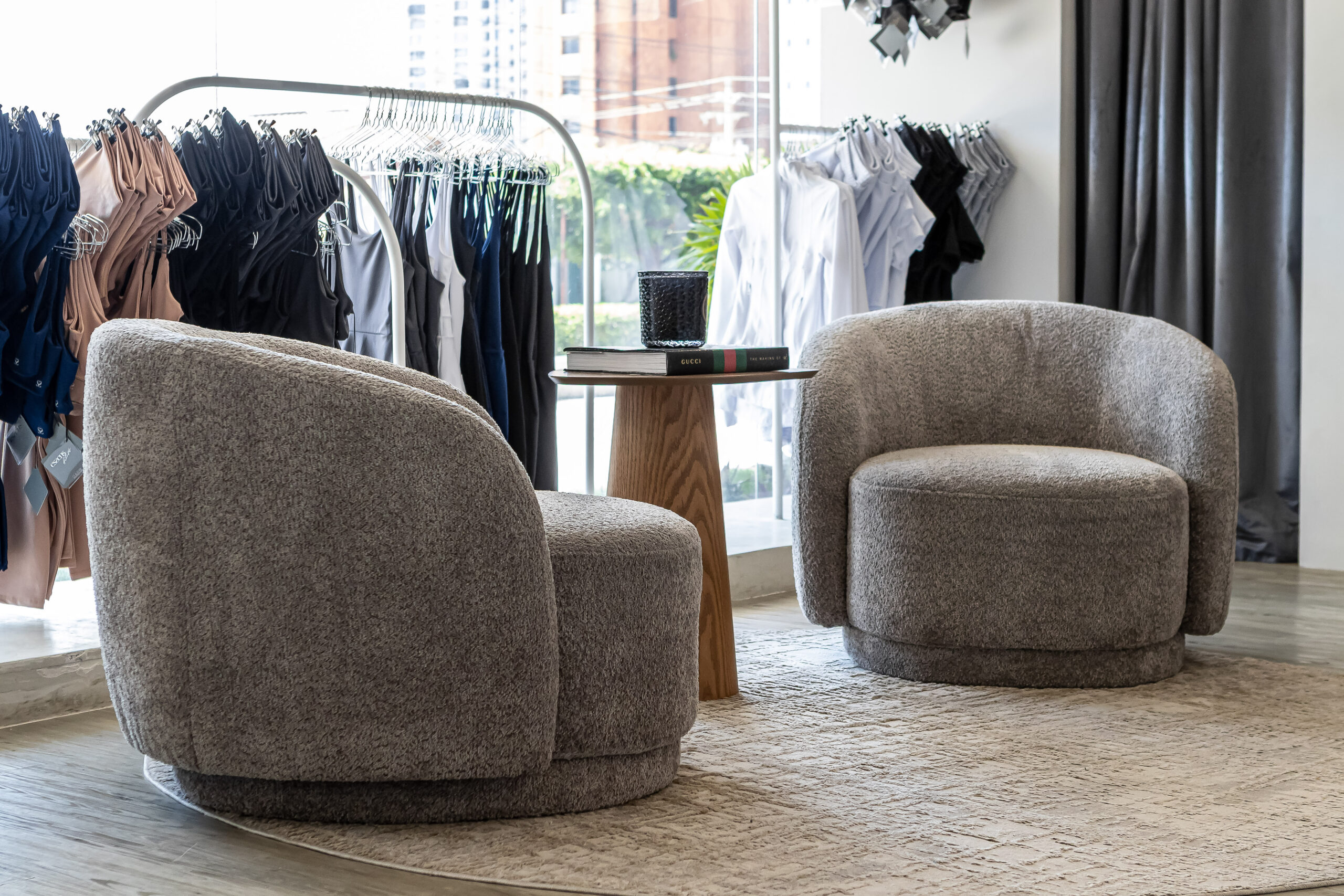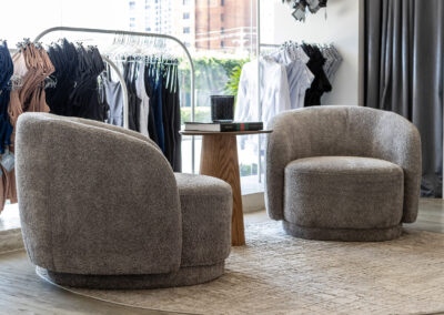 The fitting room area was conceived as a seamless extension of the sales floor: spacious, discreet, and comfortable. To the side, a small and elegant lounge offers companions a place to wait without disrupting the store’s aesthetic language..