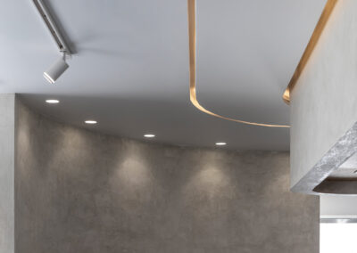 Natural light enters through large-format windows, complemented by subtle technical lighting that enhances textures, depth, and atmosphere.